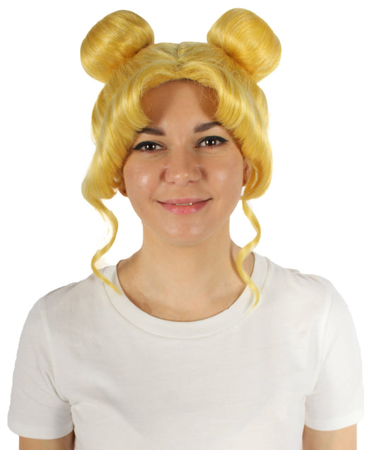 Unisex Anime Yellow-blonde Wig with Buns, Perfe...