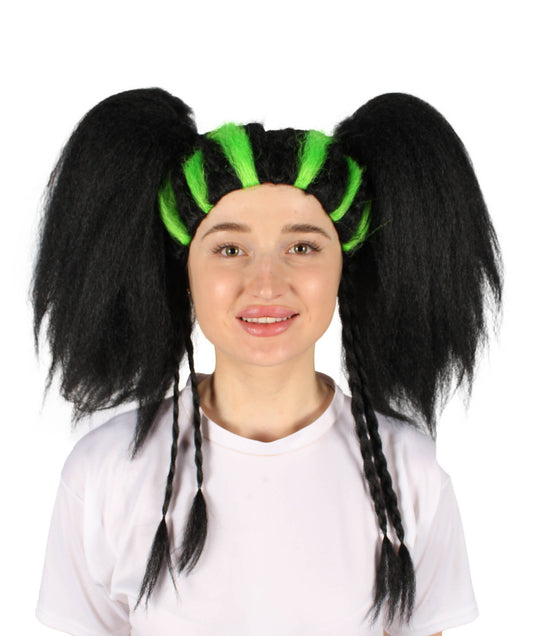 Women’s Video Game Black Cornrow Wig with Pigta...