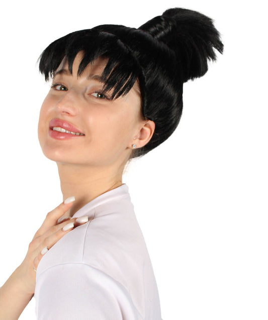 Women’s Anime Manga Black Wig with a Tied Knot ...