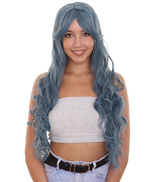 Ash Blue Halloween Wig | 25' Long Curly Ha...
