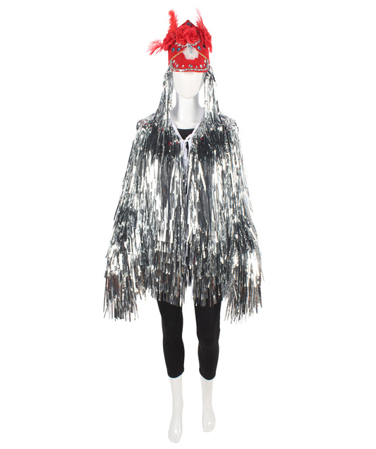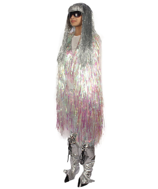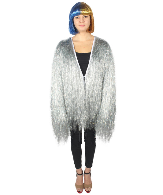 HPO Unisex Silver Holographic Long Tinsel Jacke...
