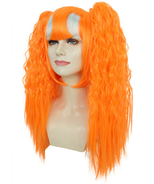 Women’s Vibrant Orange Long Wavy Twin Ponytail ...