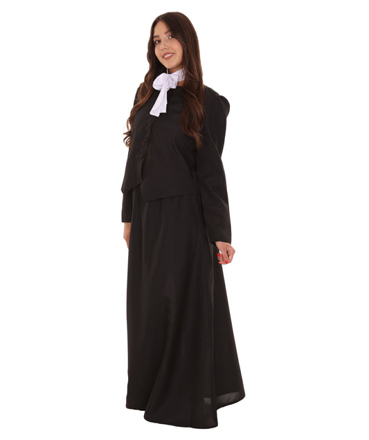 Answer: The Women’s Gothic Witch Costume Set offers multiple size options and includes a jacket, skirt, belt, and hat, allowing enthusiasts to embody the elegance and mystique of a gothic witch with ease.