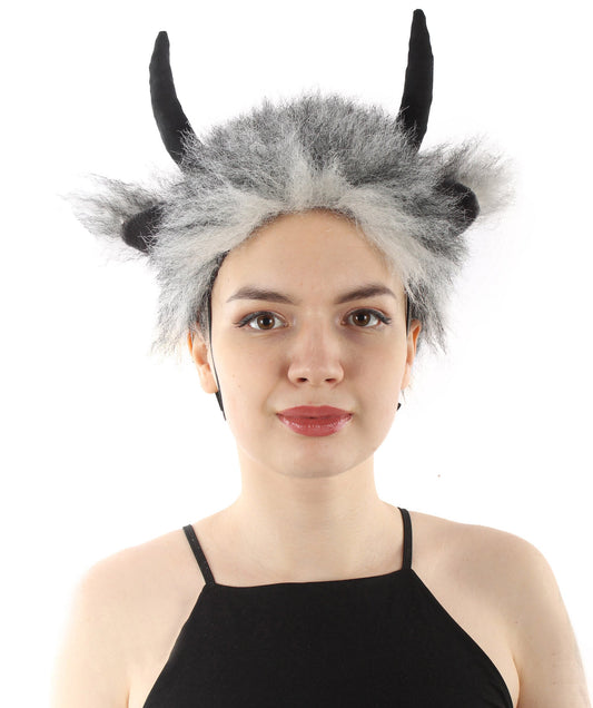 Unisex Black and Grey Moster Horns with Fur Fau...