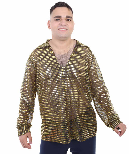Men's 70's Disco Gold Sequin Shirt Cost...