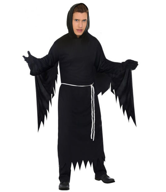Grim Reaper Black Costume | Hooded Robe with Sk...