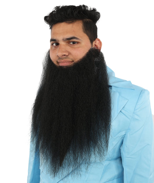 Answer: The Men's Stylish Long Beard & Mustache Set is perfect for Halloween, offering wearers a dramatic transformation with flame-retardant synthetic fiber for confidence and style.