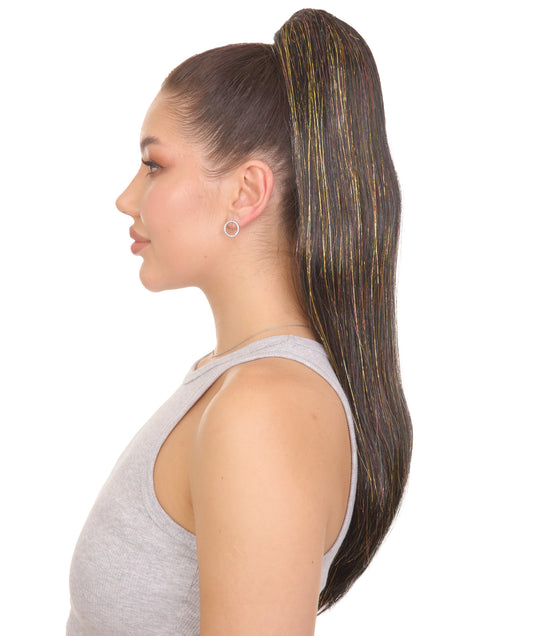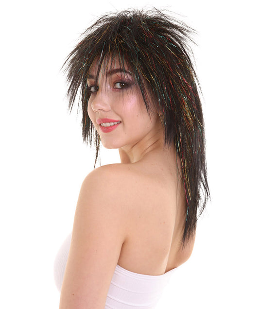 Womens Long Baby Black Wig with Tinsel Highligh...