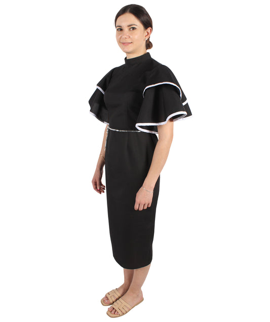 HPO Women's Black Ruffle Sleeves Peplum Dre...