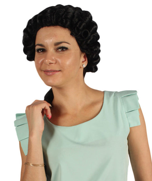 Womens Colonial Lady Curly Black Historical Wig...