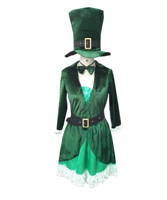 Answer: The Women's Luscious Leprechaun Costume in green captures the playful spirit of St. Patrick's Day with its fancy design and festive color, making it a charming choice for holiday celebrations.