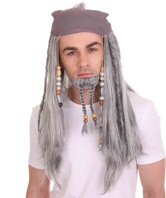 Ghost Pirate Wig with Hat Set | Grey Pirate Wig...