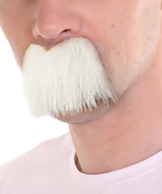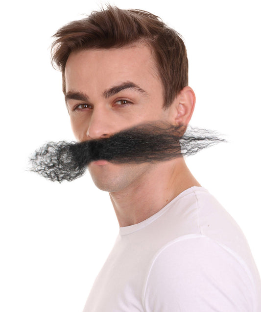 Answer: The Men's Extra thick Black Banker Mustache, stage-ready and made from flame-retardant synthetic fiber, adds drama and presence to any character. Its bold design makes it a standout choice for fancy dress, drag performances, or theatrical productions.