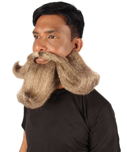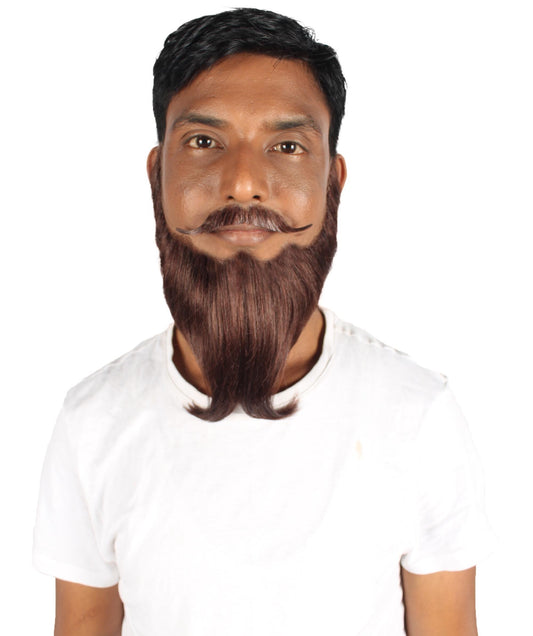 The Men's Black and Grey Mustache with Beard is the ideal option for an elegant yet tough look. This flame-retardant synthetic fiber addition is made to last and provide safety. This combination of beard and mustache lends a charming and manly vibe, perfect for either a dapper gentleman or a mystery stranger.