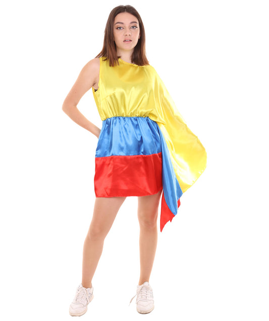 With the Women's Flag Trolls Dress Sport Costume Collection, you may flaunt your sense of patriotism. This line of gowns lets men promote their favorite countries or commemorate their heritage with flags from all around the world. These patriotic costumes are sure to draw attention and make people smile, whether you are representing the United States, Argentina, Australia, Brazil, Canada, France, or Germany. The Women's Celebratory Flag Dress Costume Collection offers conventional flag costumes with a fun twist. These costumes are ideal for adding a whimsical touch to your carnival ensemble because of their vivid colors and lively designs. These joyous outfits, which can be worn as the German or French flags, encapsulate the spirit of carnival and beckon you to partake in the festivities.
