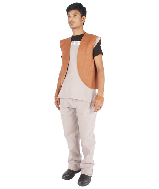 The Men's Brown Long Tunic Costume is perfect for anyone who enjoys dressing in historical or fantasy themes. It has an air of mystery and elegance. Made of synthetic cloth that resists flames, this costume is ideal for cosplay or Halloween occasions where a hint of medieval elegance is sought.