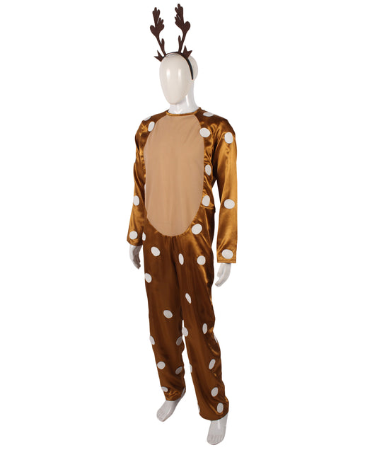 Wearing the Men's Reindeer Costume will help you embrace the holiday spirit. Made of flame-retardant synthetic fabric, this jumpsuit is ideal for Halloween parties or Christmas-themed gatherings as it turns you into a beloved holiday figure.