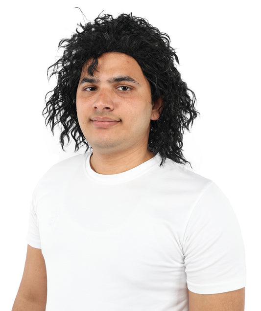 Men's Black Pop Star Curly Wig–Short Hair w...