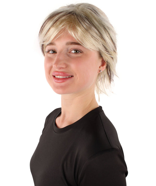 Women's Mixed Blonde Short Wig with Bangs, ...