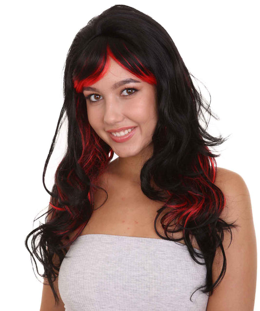 Black & Red Seduction Womens Wig | Long Cur...