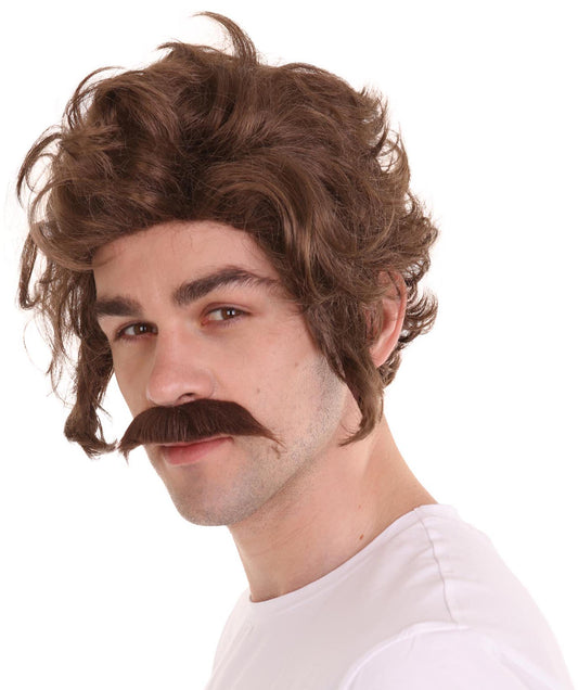 Men Brown Wig with Moustache Set | Halloween Wi...
