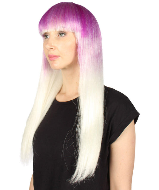 Womens Purple and White 2 Tone Long Bob Wig | P...