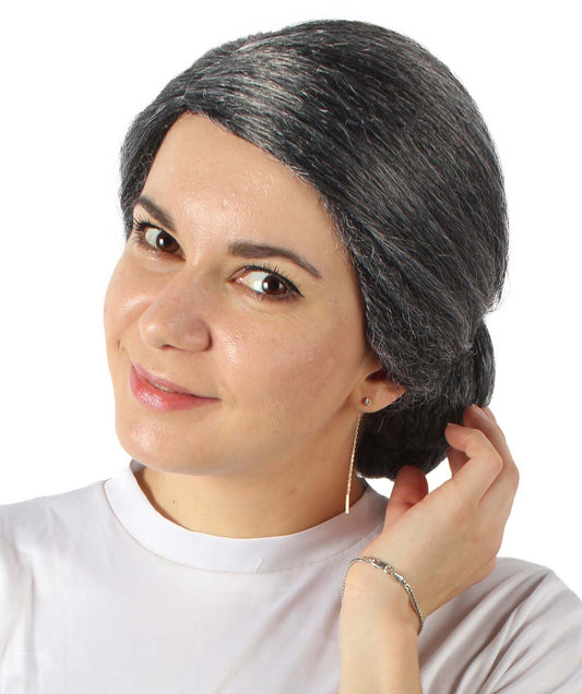 HPO Women’s Dark Grey Older Lady Bun Wig | Per...