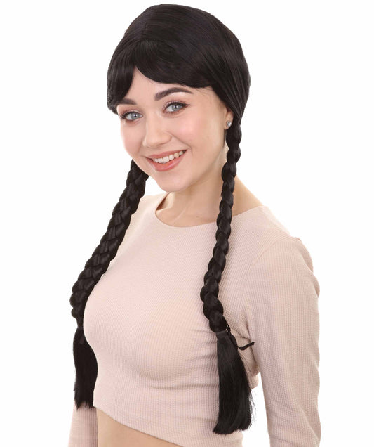 Answer: Available in multiple colors and featuring a black head ribbon, this wig crafted from flame-retardant synthetic fiber adds mystery and sophistication to witch costumes for Halloween.