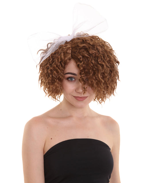 Womens 80s Wild Curly Wig with Bow | Brown Vint...