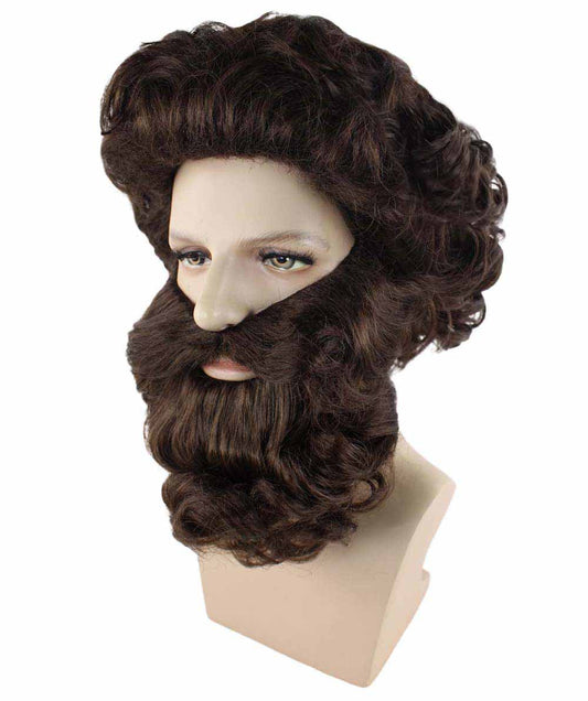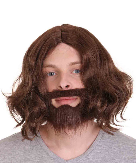 This long, brown wig with a beard is made from soft fake hair. It looks real and feels good to wear. It is 19 inches long and can be used to play big biblical characters or to make your role more grand.