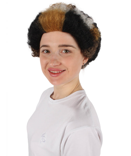 Here are some new and exciting choices to consider. This wavy, bumpy wig is great for people who like funny movie characters. Created with fire-resistant man-made material, it gives you safety and looks good too. The fabric feels real and fits well, and it's great for Halloween or other dress-up events when you want to add some fun to your outfit.