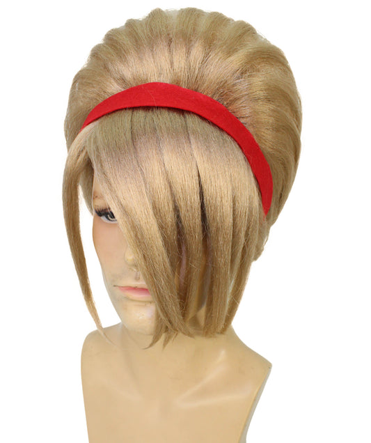 Get the look of a fighting game hero with this short blonde wig that has a red ribbon. This costume is made from a special material that doesn't catch fire easily. It's great for Halloween and dressing up as characters. The short, blonde hair and red ribbon are like the classic characters in a fighting game.