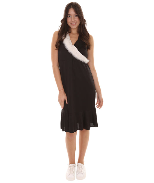 Answer: Men can style the Women's Flapper Costume in black by adding a feathered headband and a long string of pearls. This costume, with its fringed design, captures the glitz and glamour of the Jazz Age, making it ideal for a Gatsby-themed party.