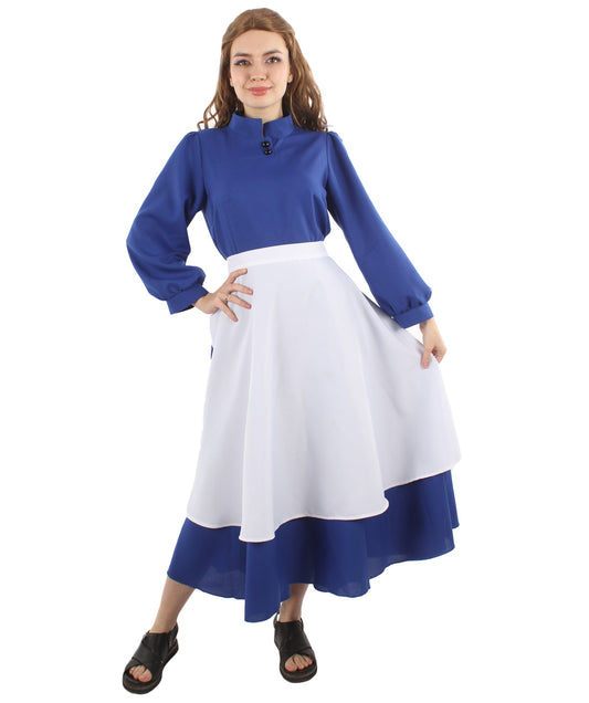 Answer: The Women's French Maid Costume features a classic black dress with white accents, offering a chic and playful look. Its timeless design makes it a sophisticated option for Halloween and themed events.