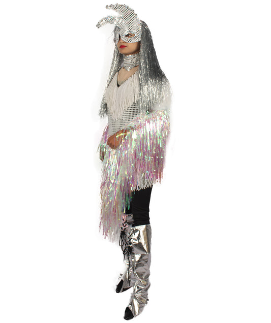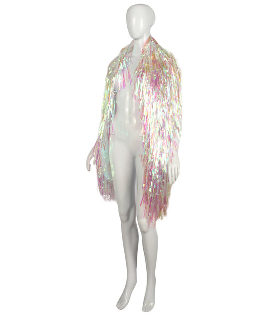 HPO Unisex Silver Holographic Long Tinsel Jacke...