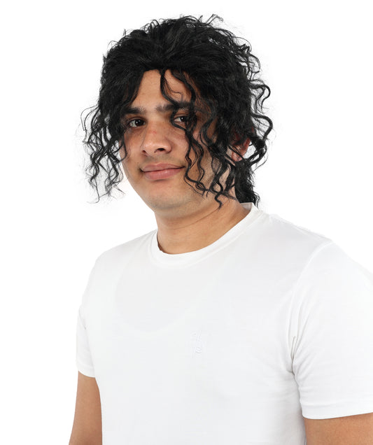 Men's Black Pop Star Medium Curly Wig-Synth...