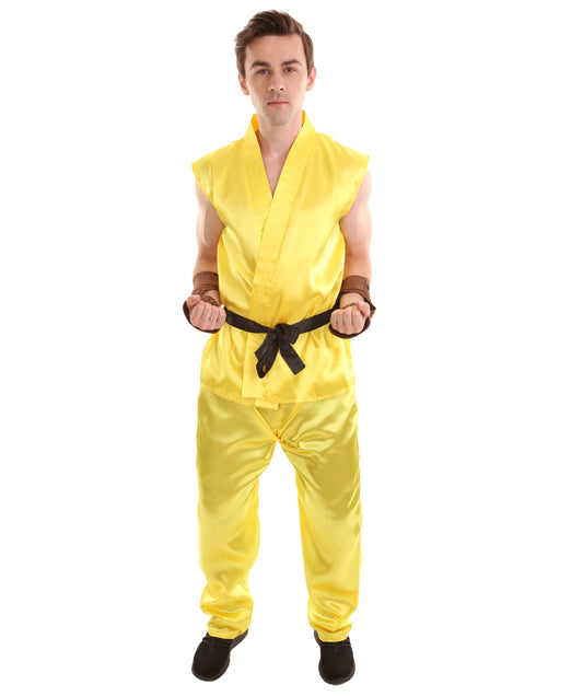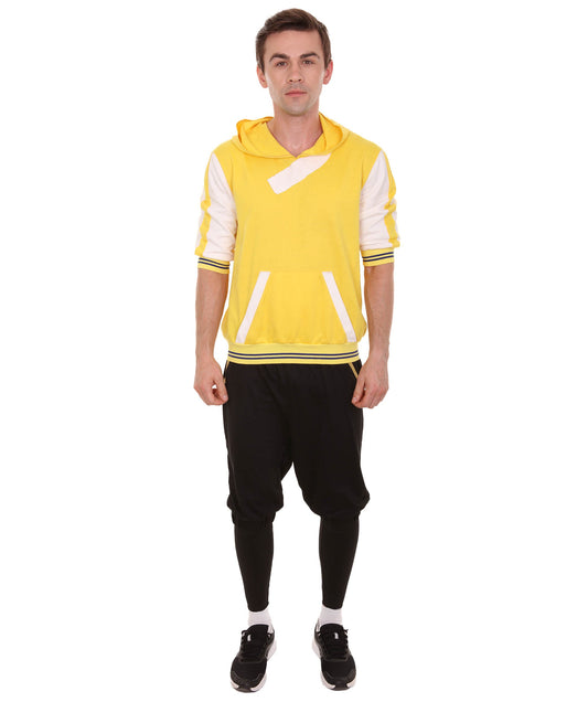 Put on the yellow and black Men's Team Uniform Costume and get ready to play on the virtual battlefield. Ideal for dressing up as a character from your favorite video game with your friends, this costume shows how well you work together and how much you enjoy spending time with each other. This well-made design will last a long time and feel comfortable for long periods at gaming events or costume parties.