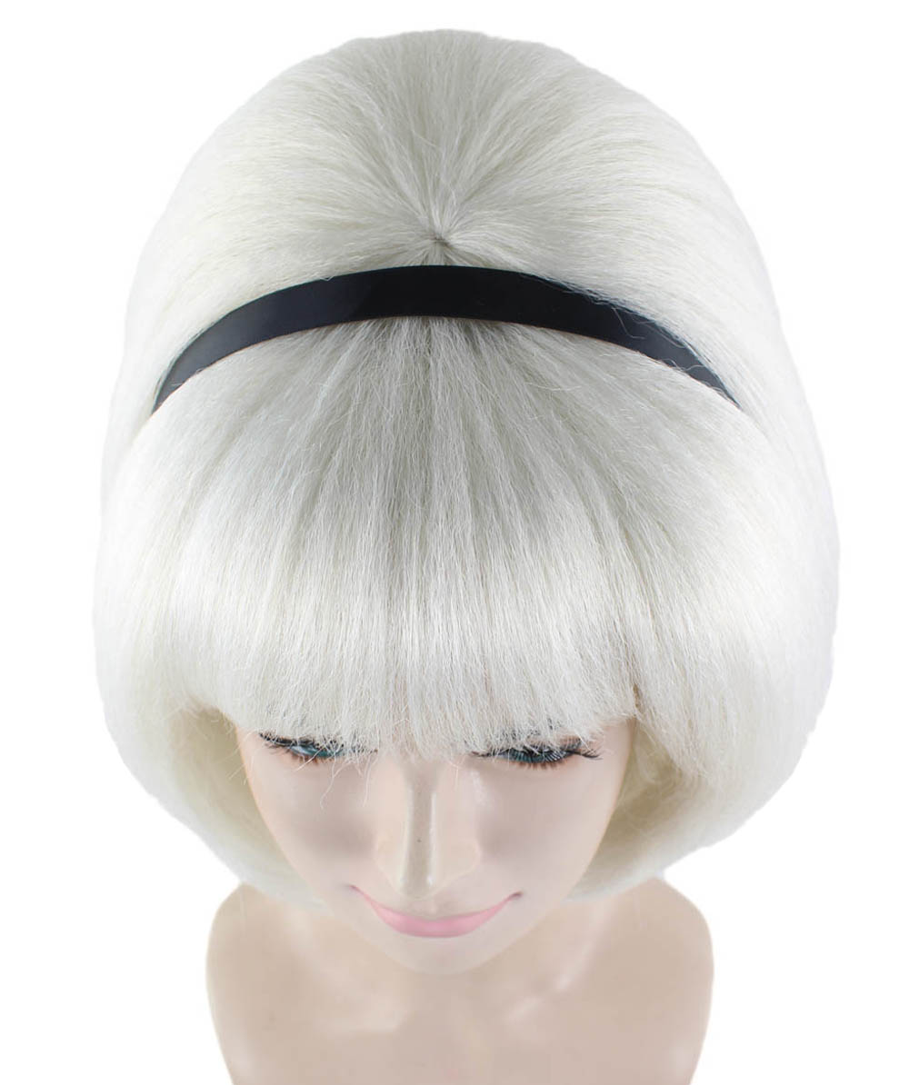 Womens 60's Lady Wig with Headband | White Vintage Wig | Premium Breathable Capless Cap
