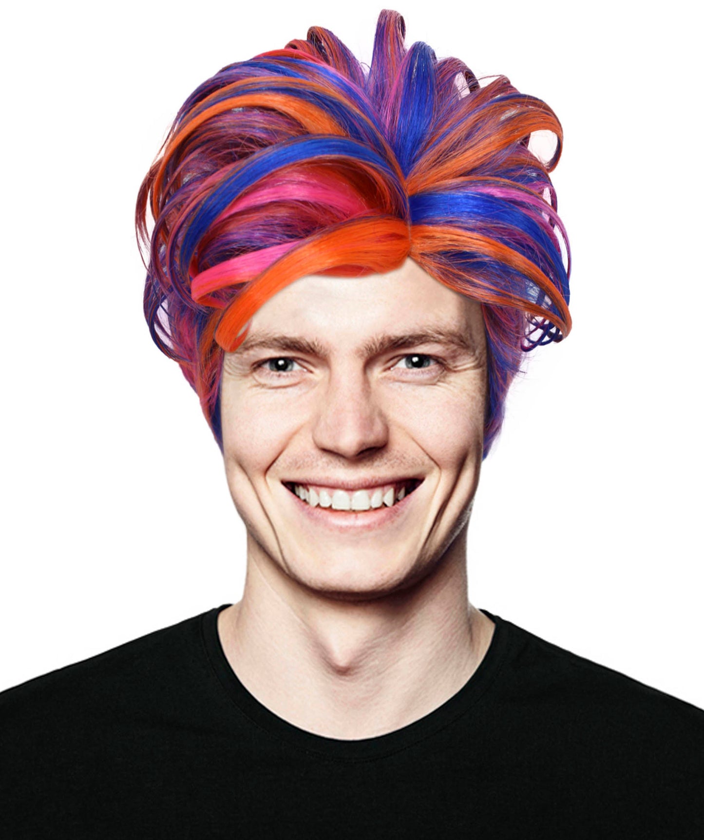 Be the 90’s Rave Guy next Halloween wearing this 90’s Rave Guy Wig. Designed to mimic one of the most popular characters in recent times, this multicolor wig can be the perfect hair accessory for your next event.90's Rave Guy Men's Short Gelled Middle Part