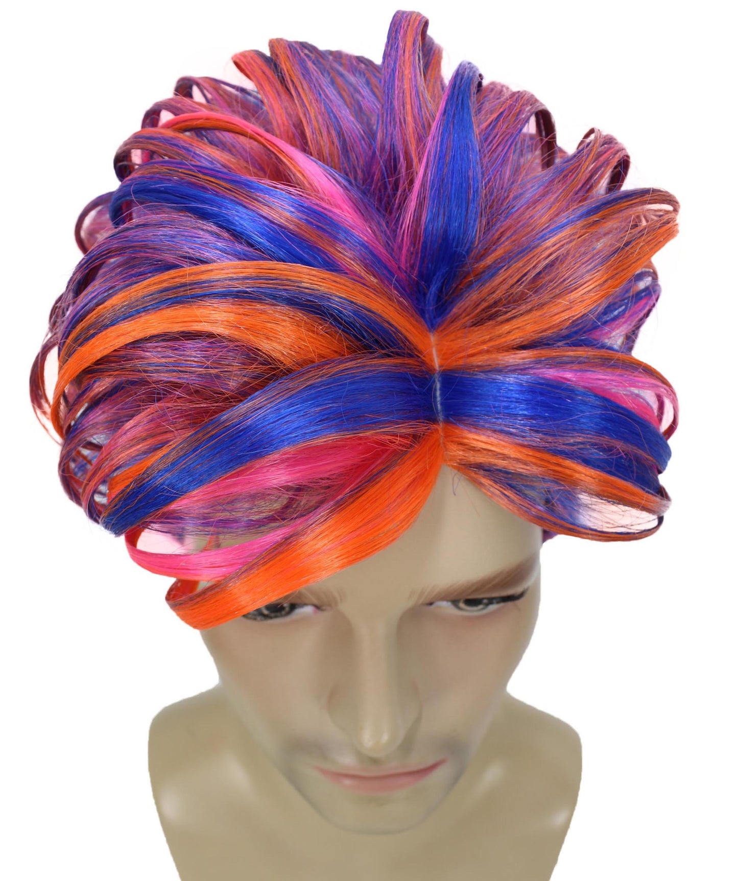 Made of synthetic fiber, this flame-retardant multicolor wig is perfect for both and alike. Made with an adjustable lining that can be stretched up to 22 inches in diameter to fit adults.