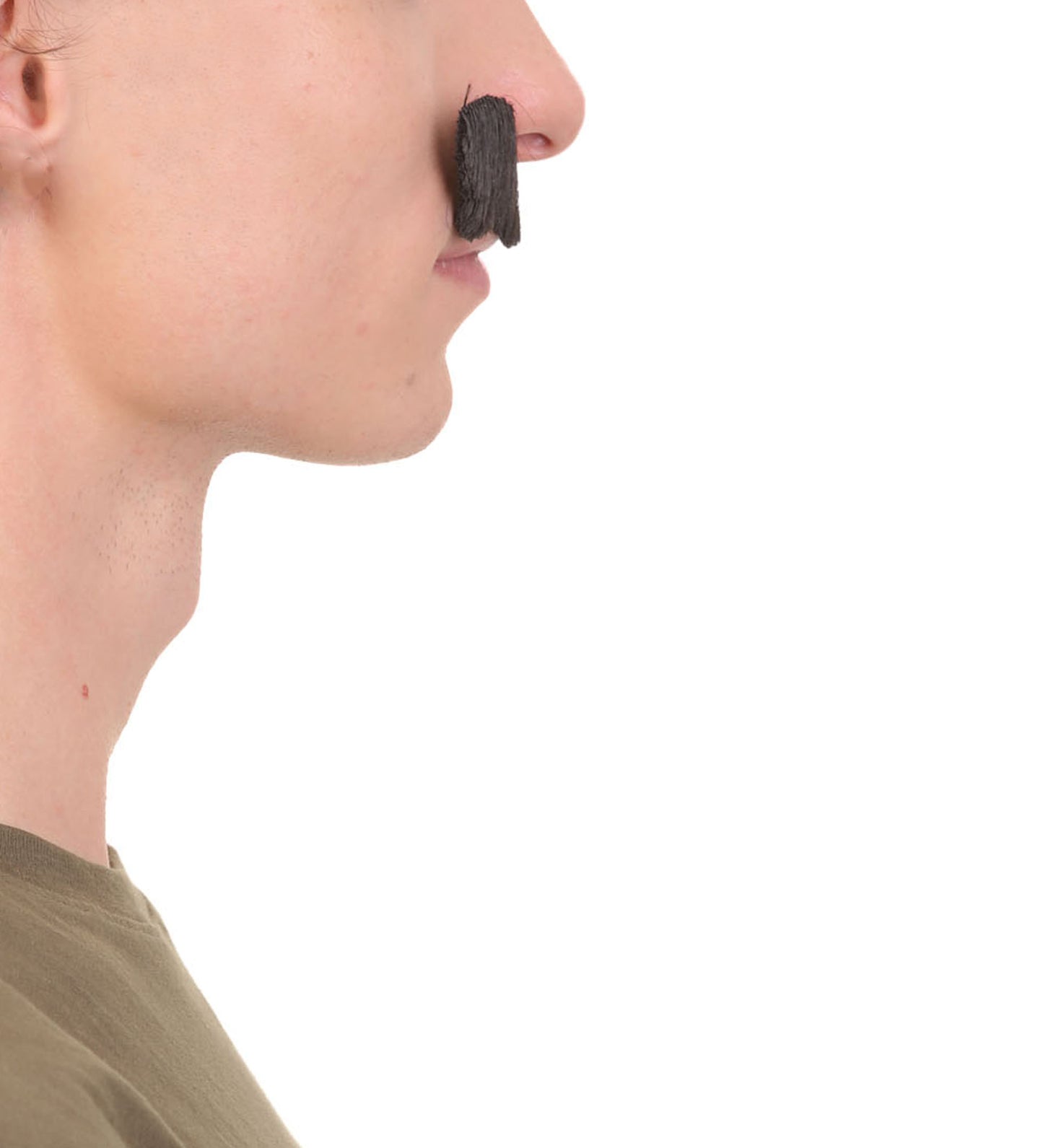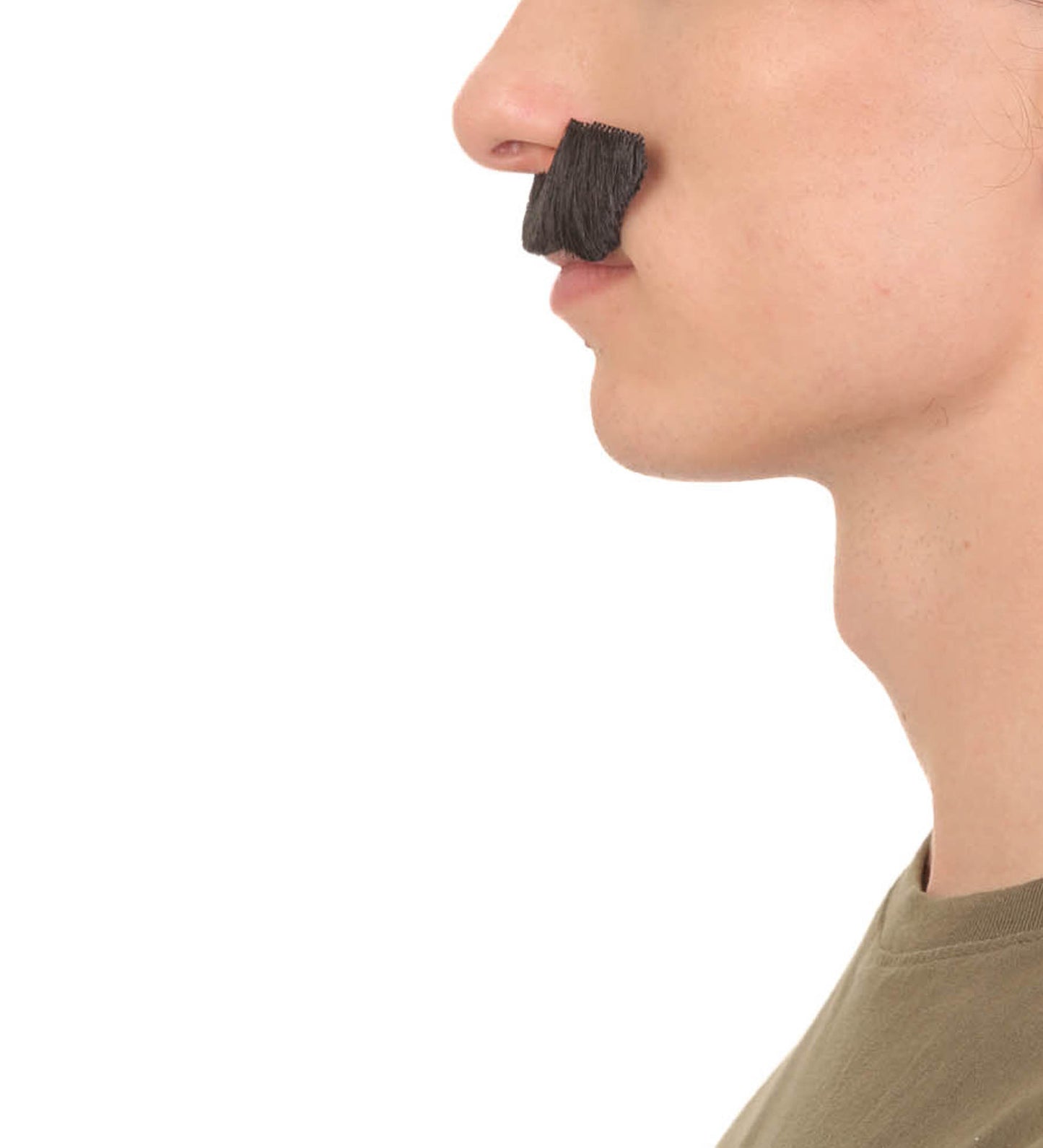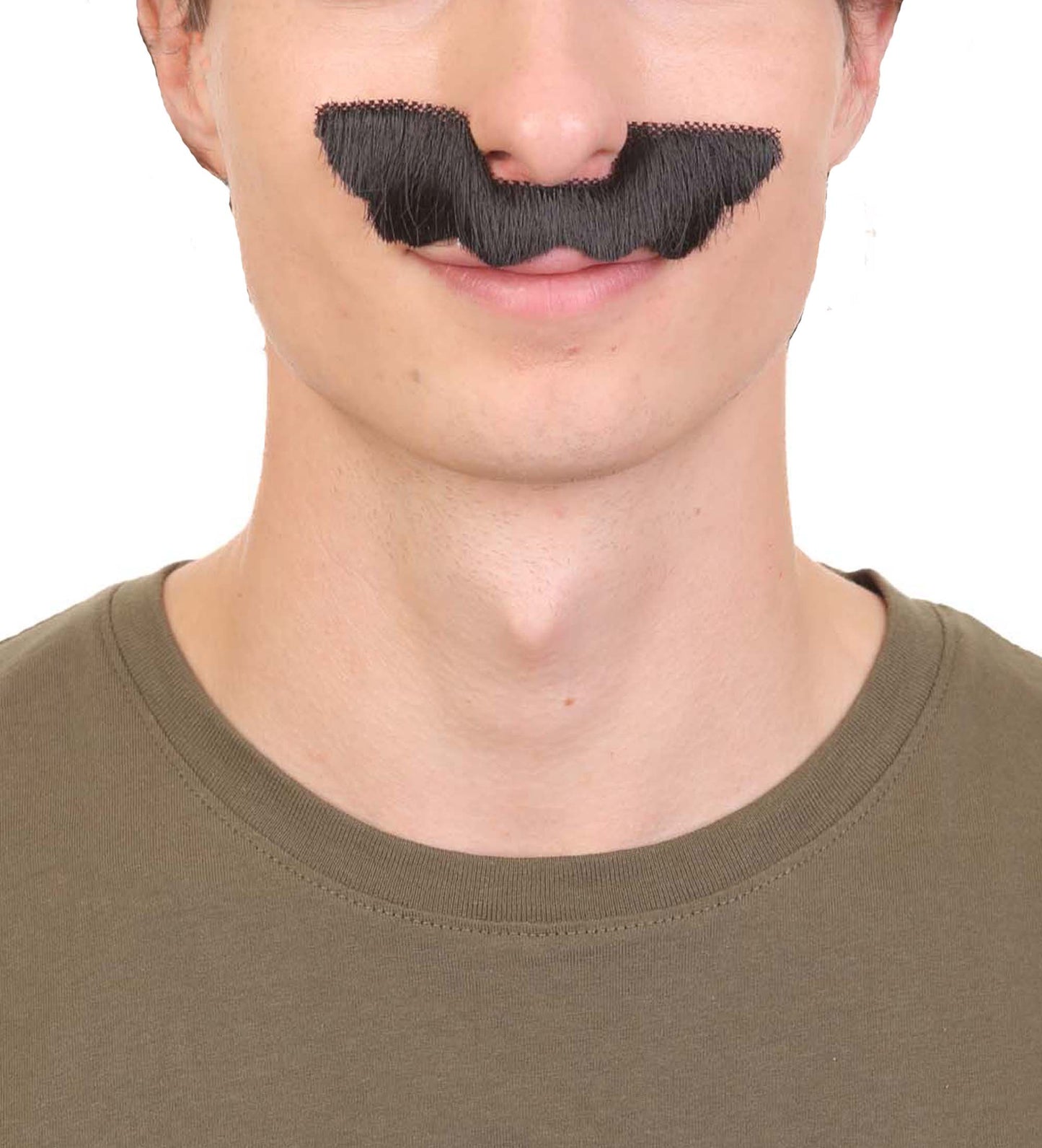 Made of synthetic fiber, this black mustache comes with an adhesive strip to give you a comfortable fit. The flame-retardant fiber makes sure you set your next Halloween party on fire but not your wing mustache.