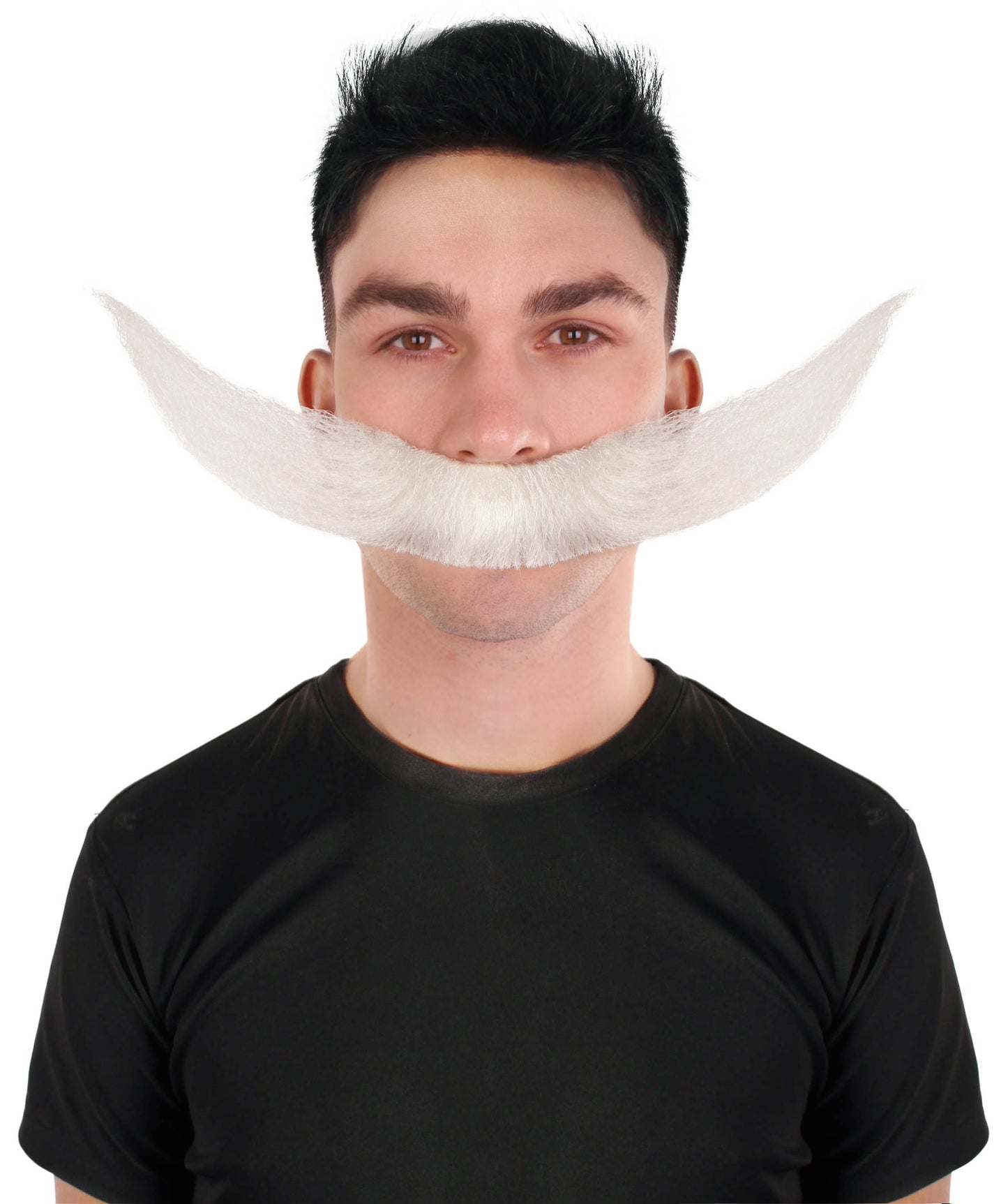 Looking for a unique anime/manga character to cosplay? Choose this fearless pirate from a popular manga and anime series! With his white crescent-shaped mustache, he's widely known as the "Strongest Man in the World," and his signature “whitebeard” mustache style has made him a popular choice for cosplayers. Made with high-quality synthetic fibers, this crescent-shaped anime mustache is super easy to use. Combine it with an open dark gray vest and a black bandanna to get the perfect resemblance to this popular character! The perfect cosplay, convention, or Halloween accessory, this distinctive mustache set works for all adults and kids above 5.