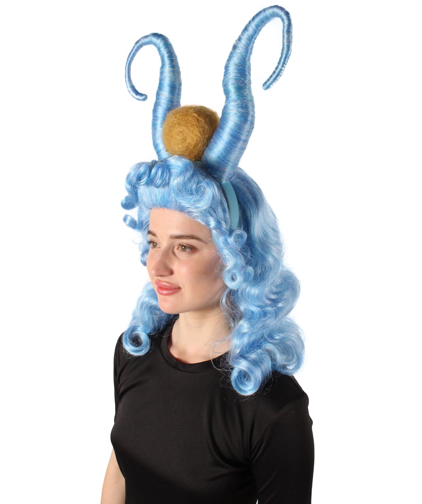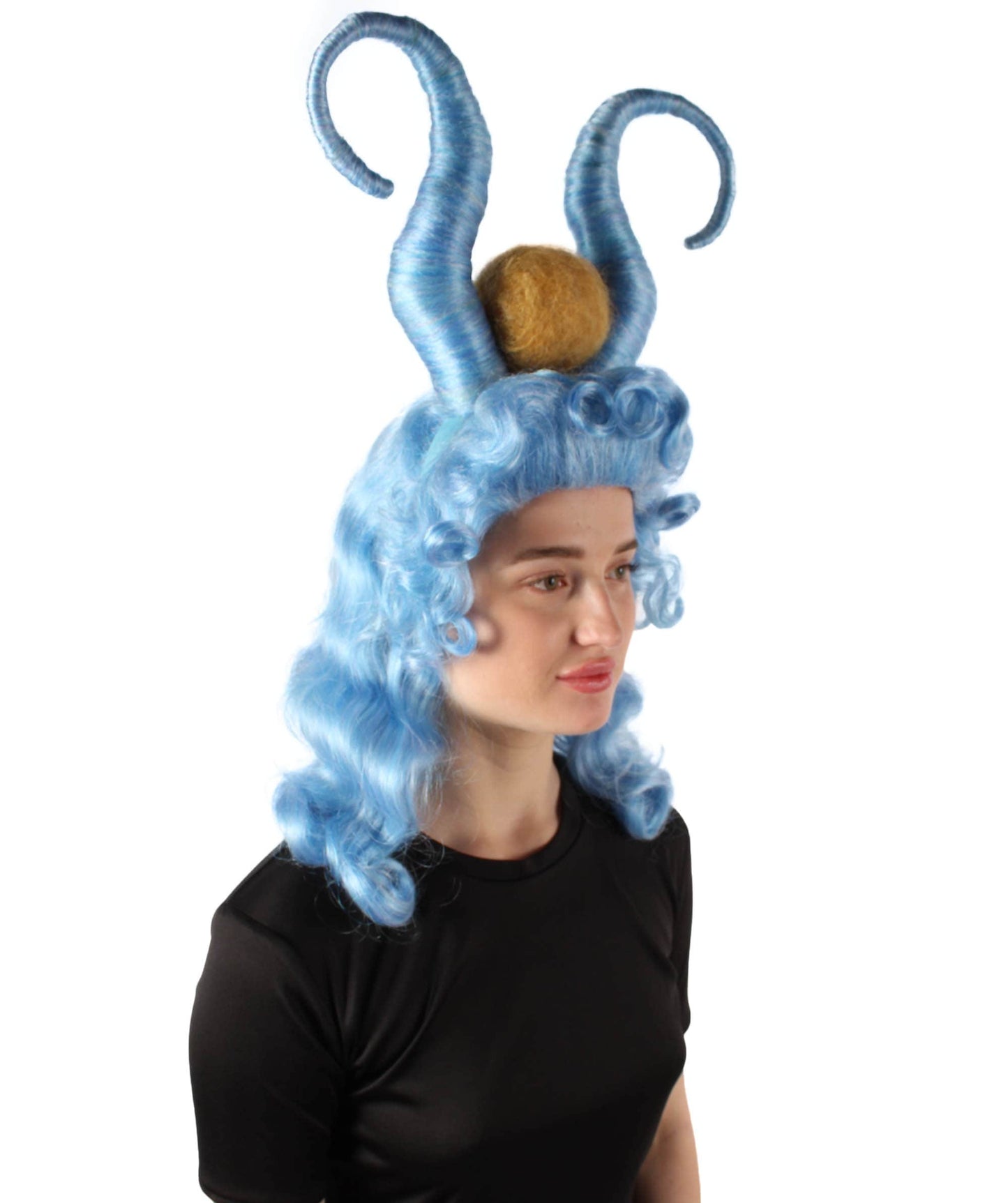 Unisex Drag Race Maleficent Blue Horned Diva Wig