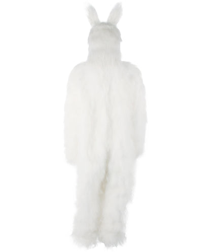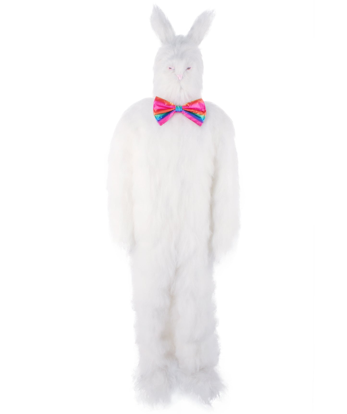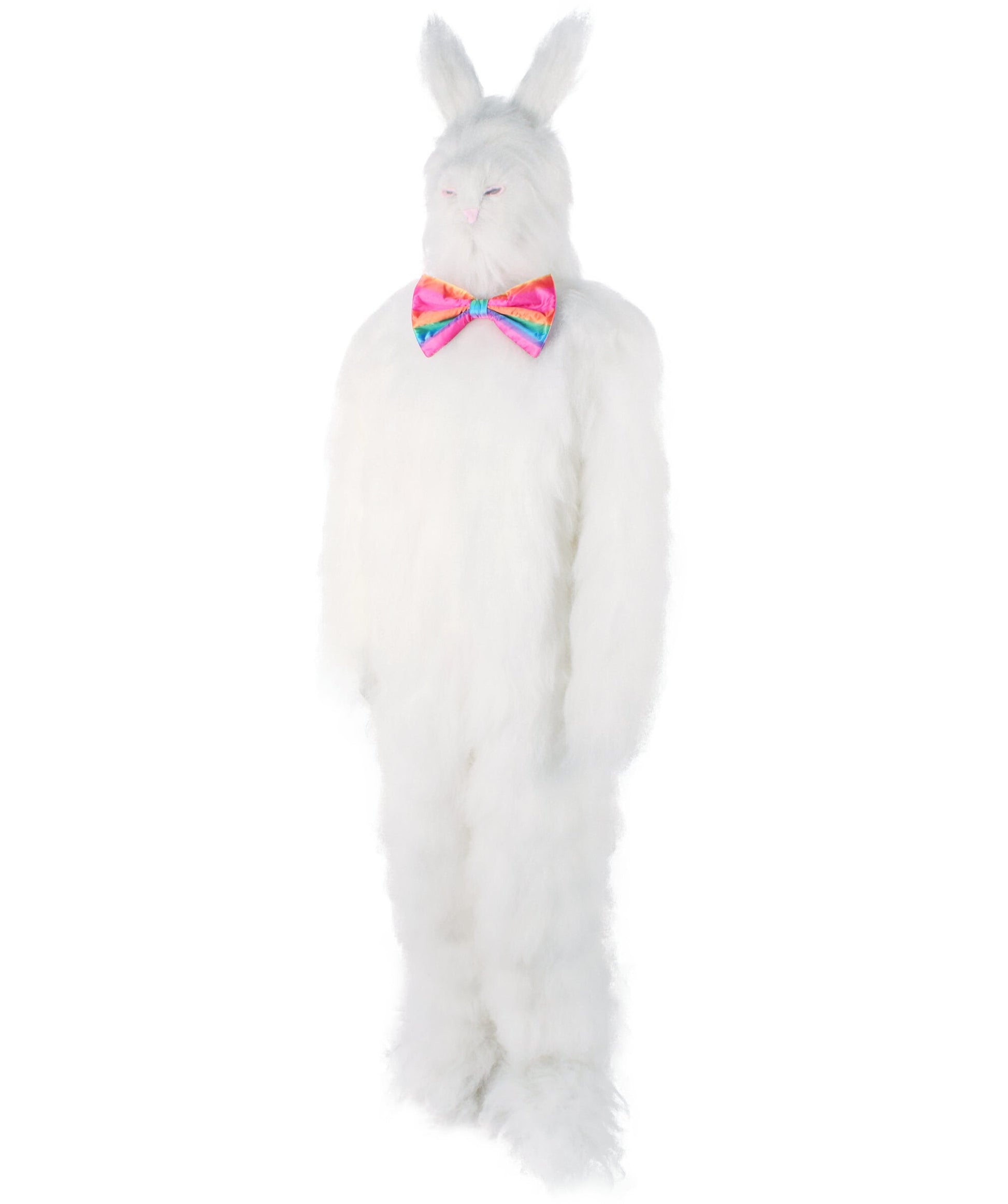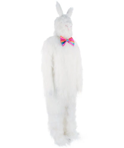 COSTUME INCLUDES: Furry Easter Bunny Jumpsuit Costume with a bow tie