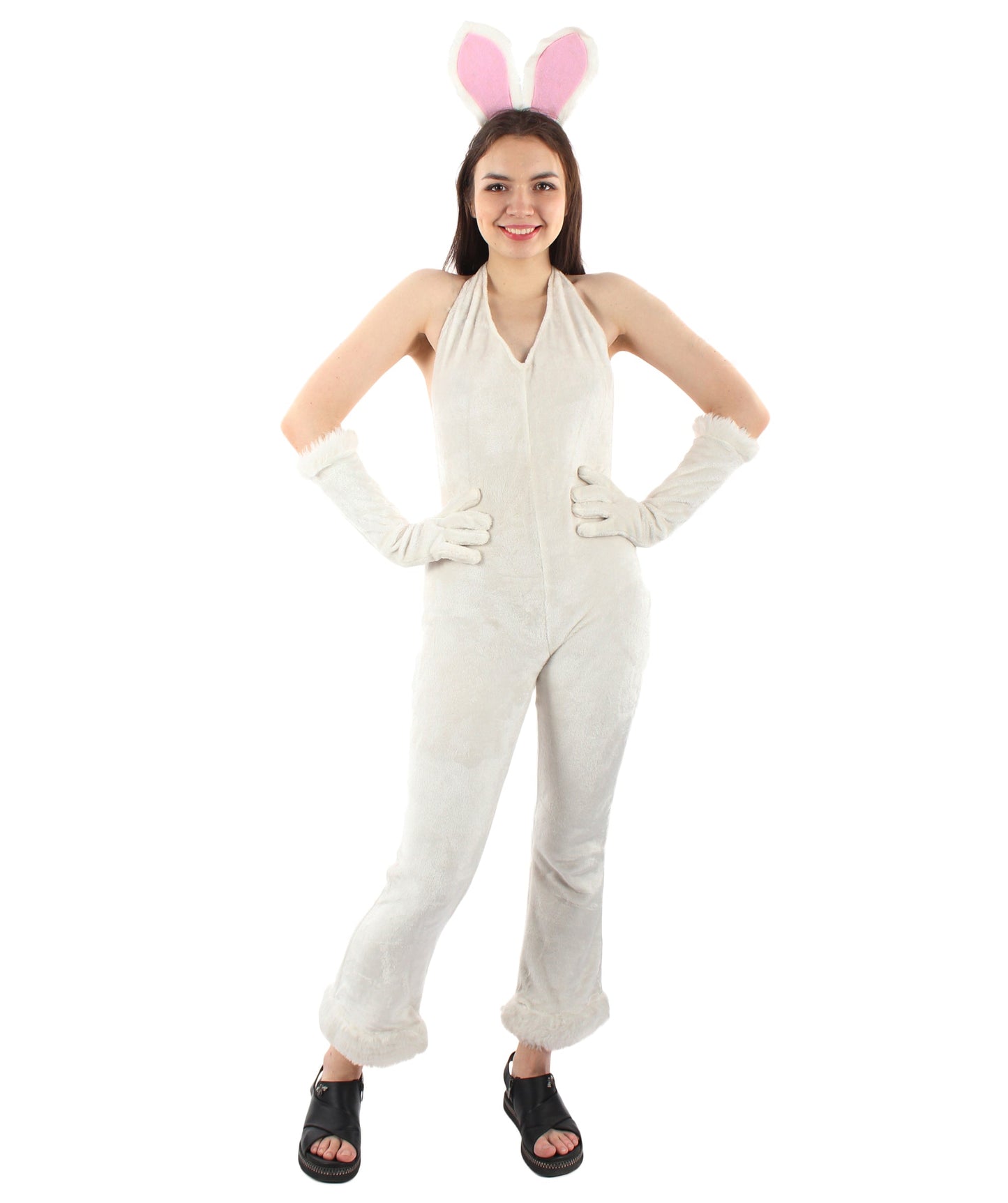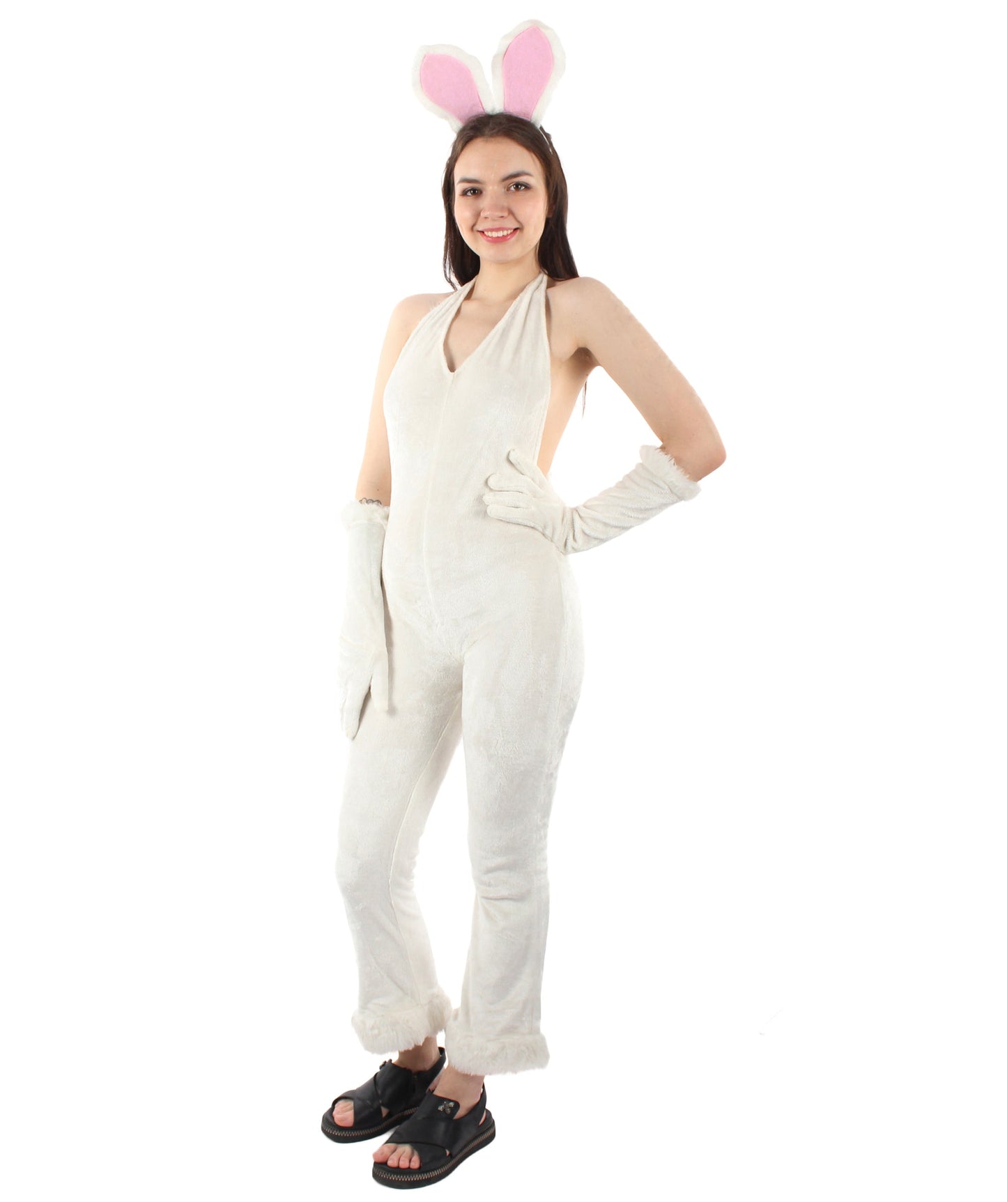 Adult Women's White Bunny Costume with Bunny Ears for Your Upcoming Halloween or Cosplay Party