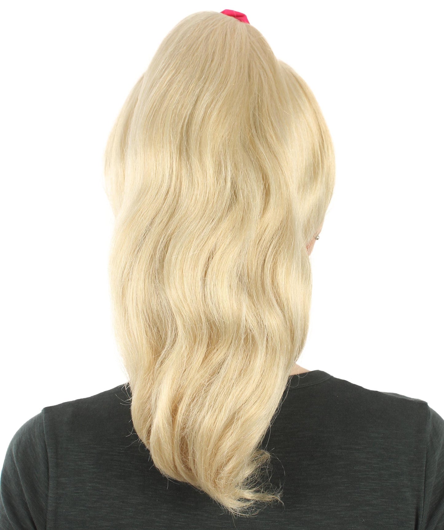 Undoubtedly, this blonde ponytail wig is sure to do the trick in transforming you into this high-fashion doll. Especially, the pink hair tie makes the entire look more adorable.