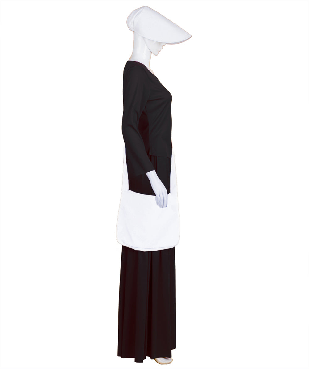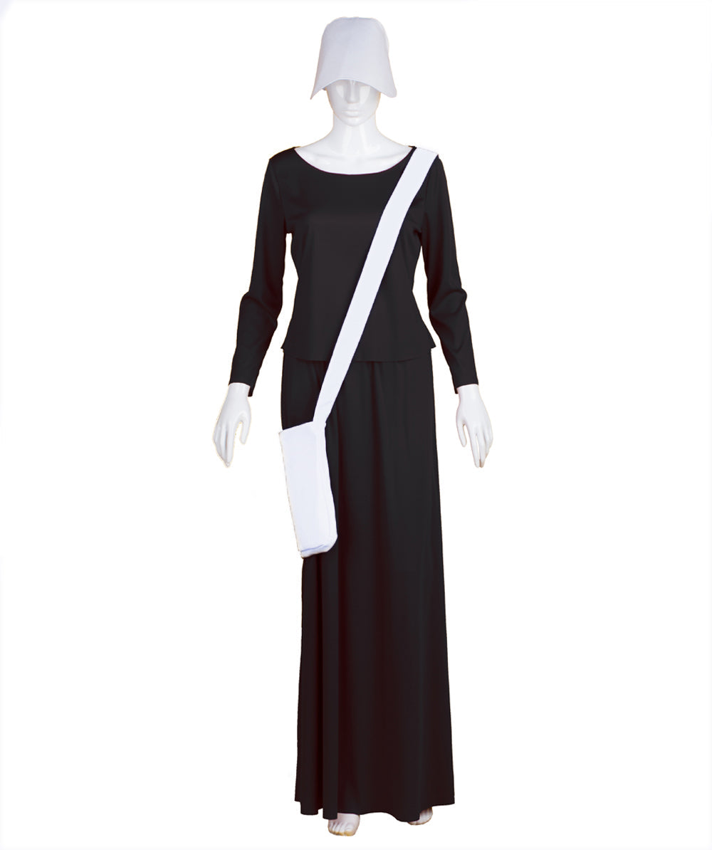 Women's Dress Handmaid Costume with Bag and Bonnet | Black Fancy Costume