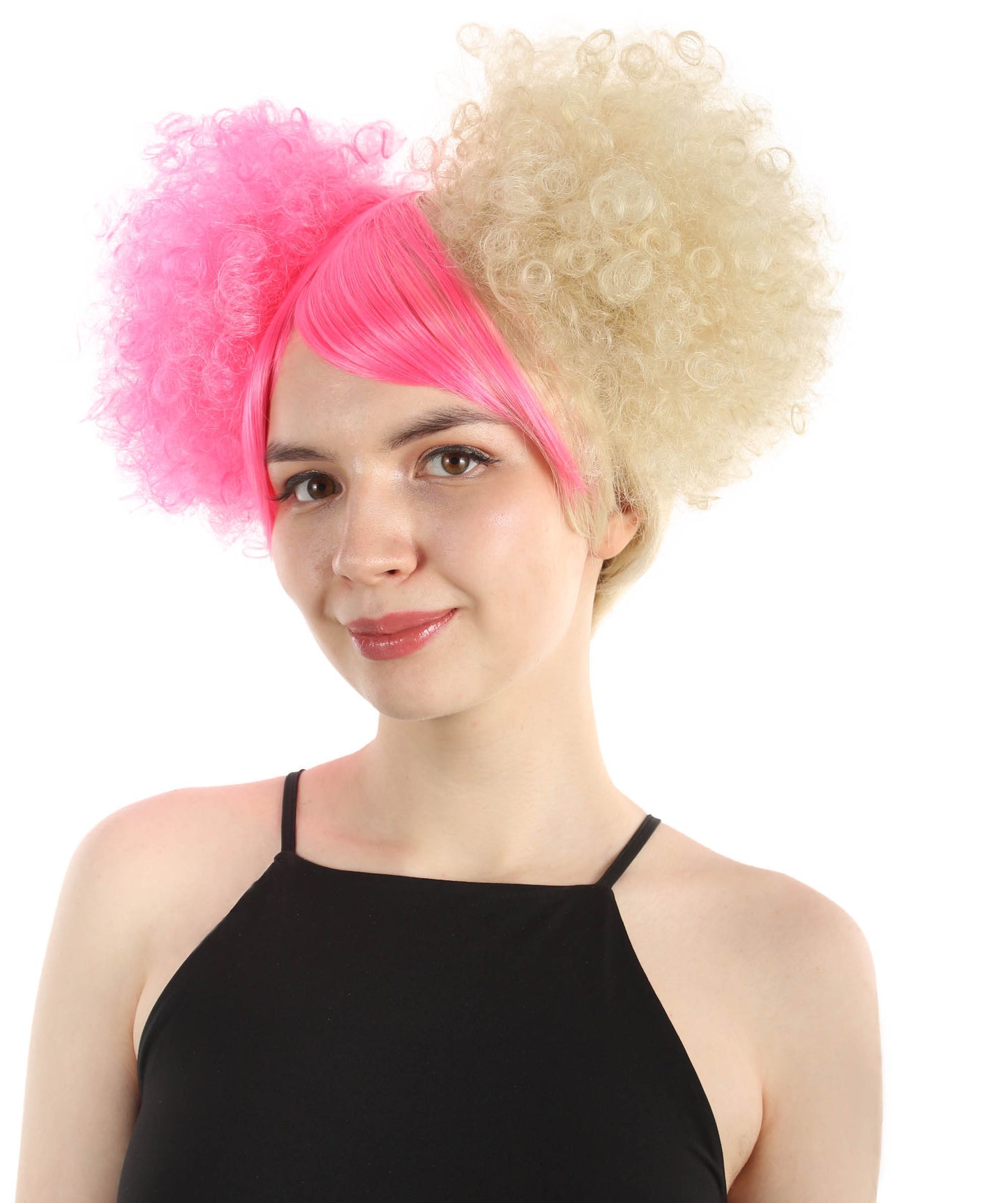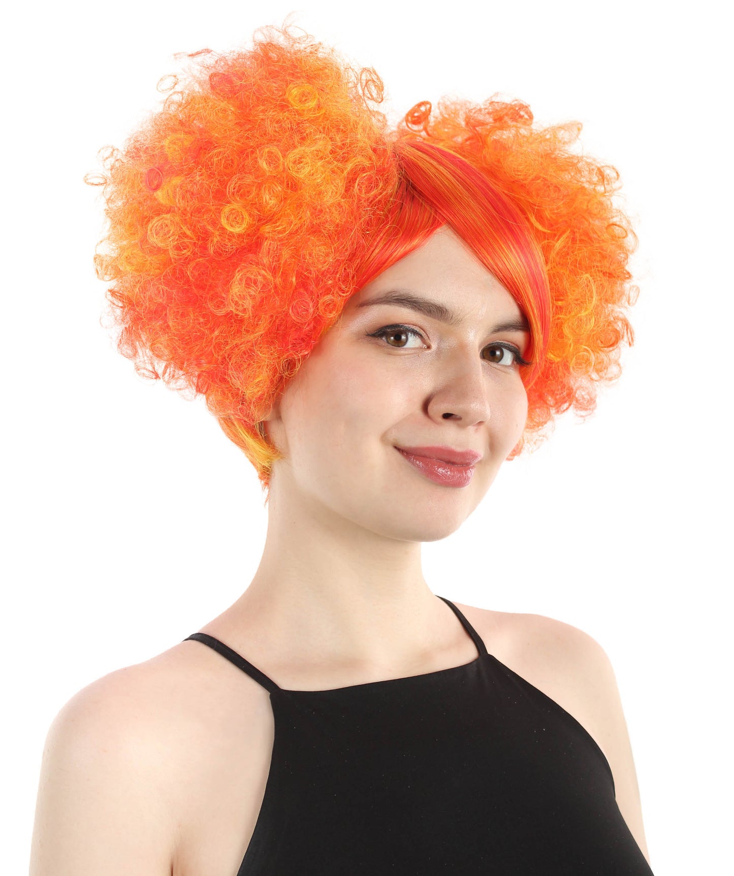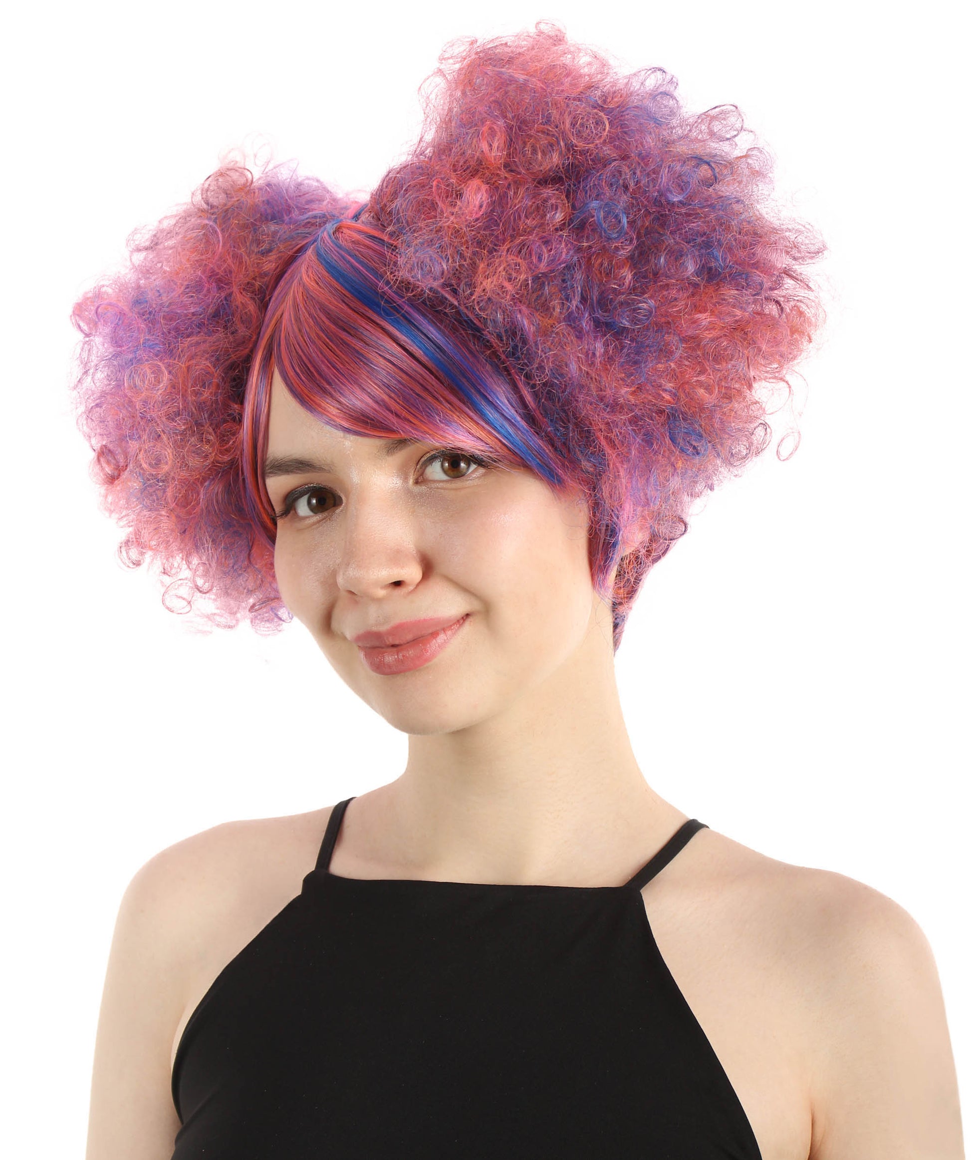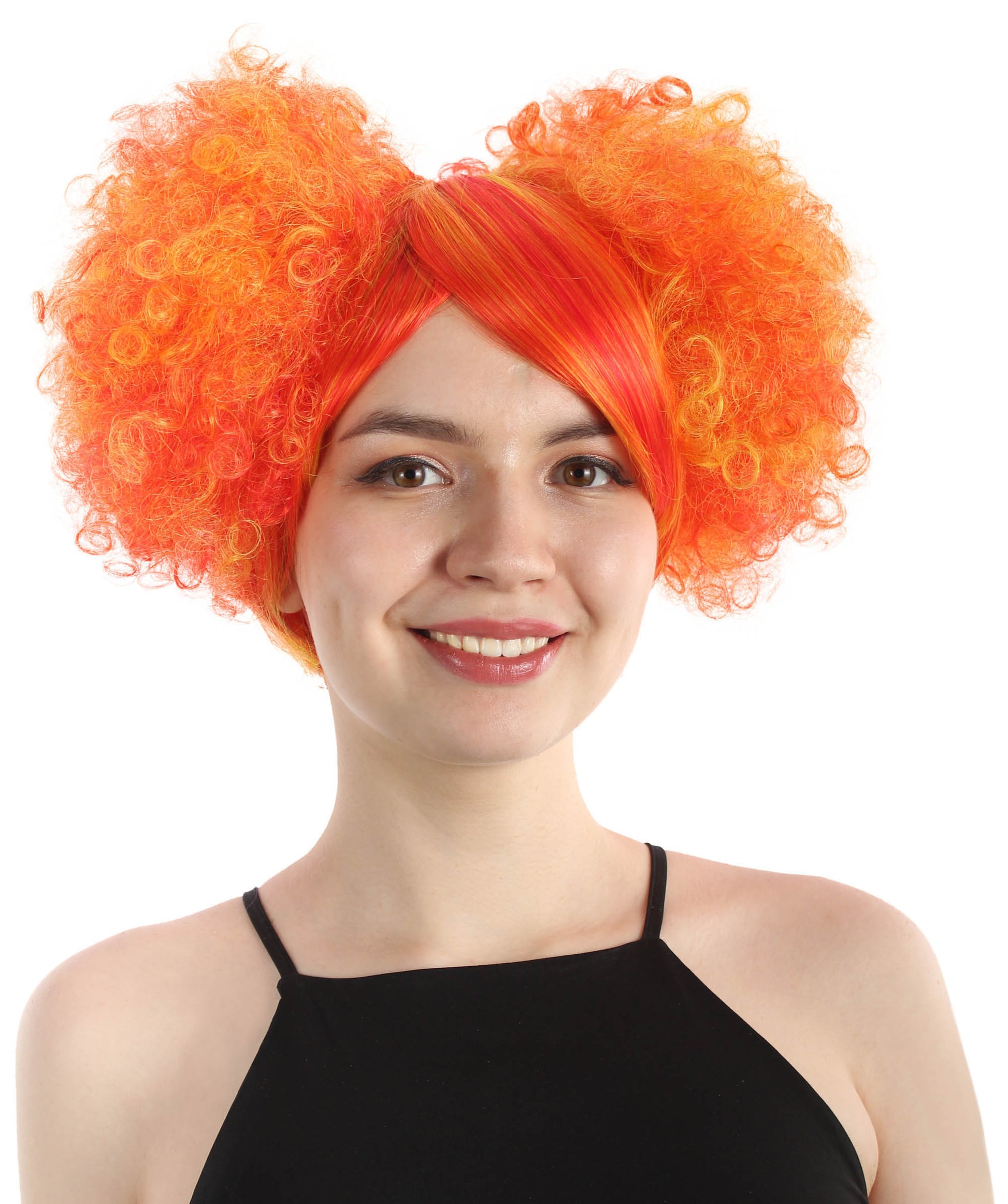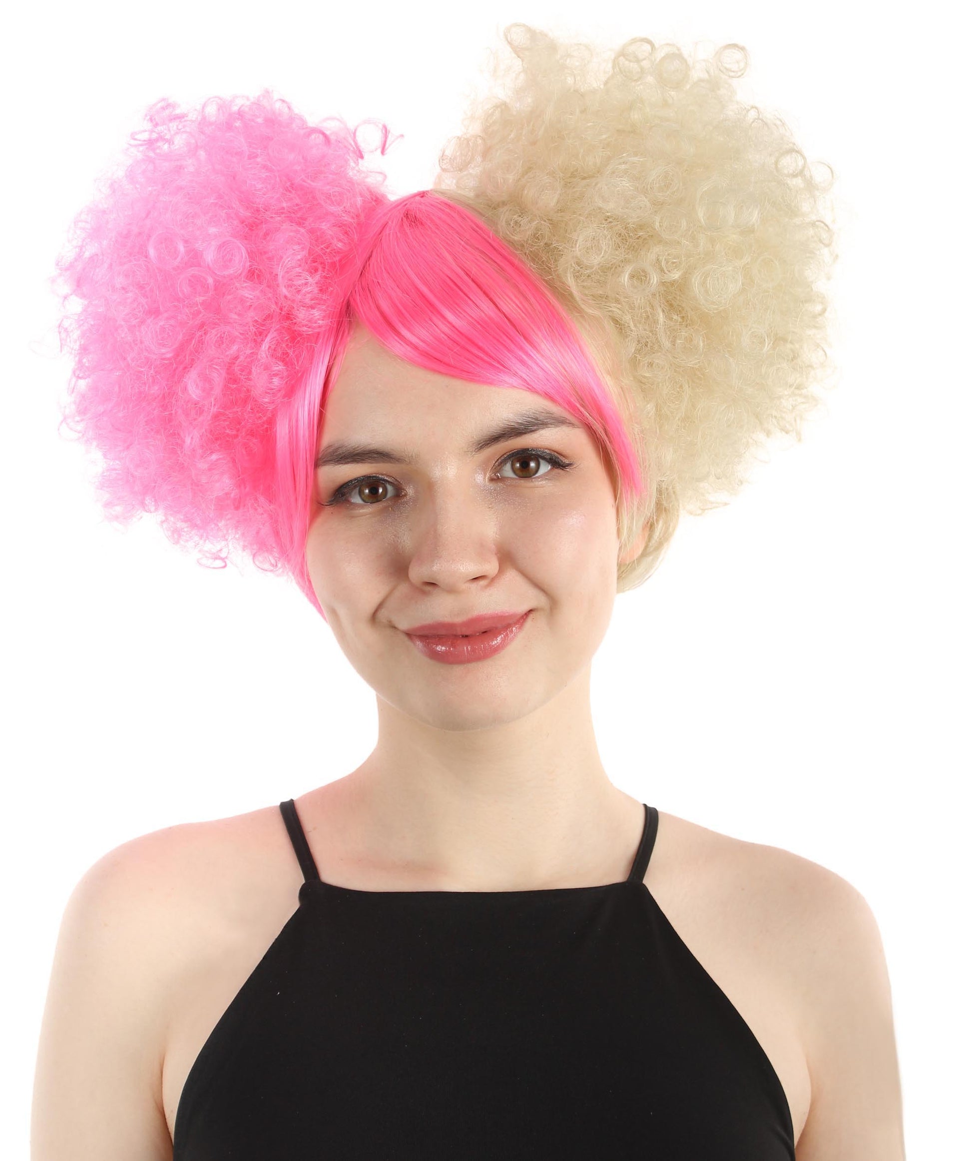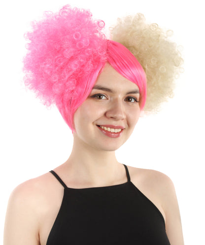 This Adult Women's Clown Puff Unisex Wig is designed to mimic a playful and eccentric clown. The wig is blended with multiple colors and adds a sense of whimsy and humor to the overall look. You can also complete your clown costume with this stunning hairpiece.