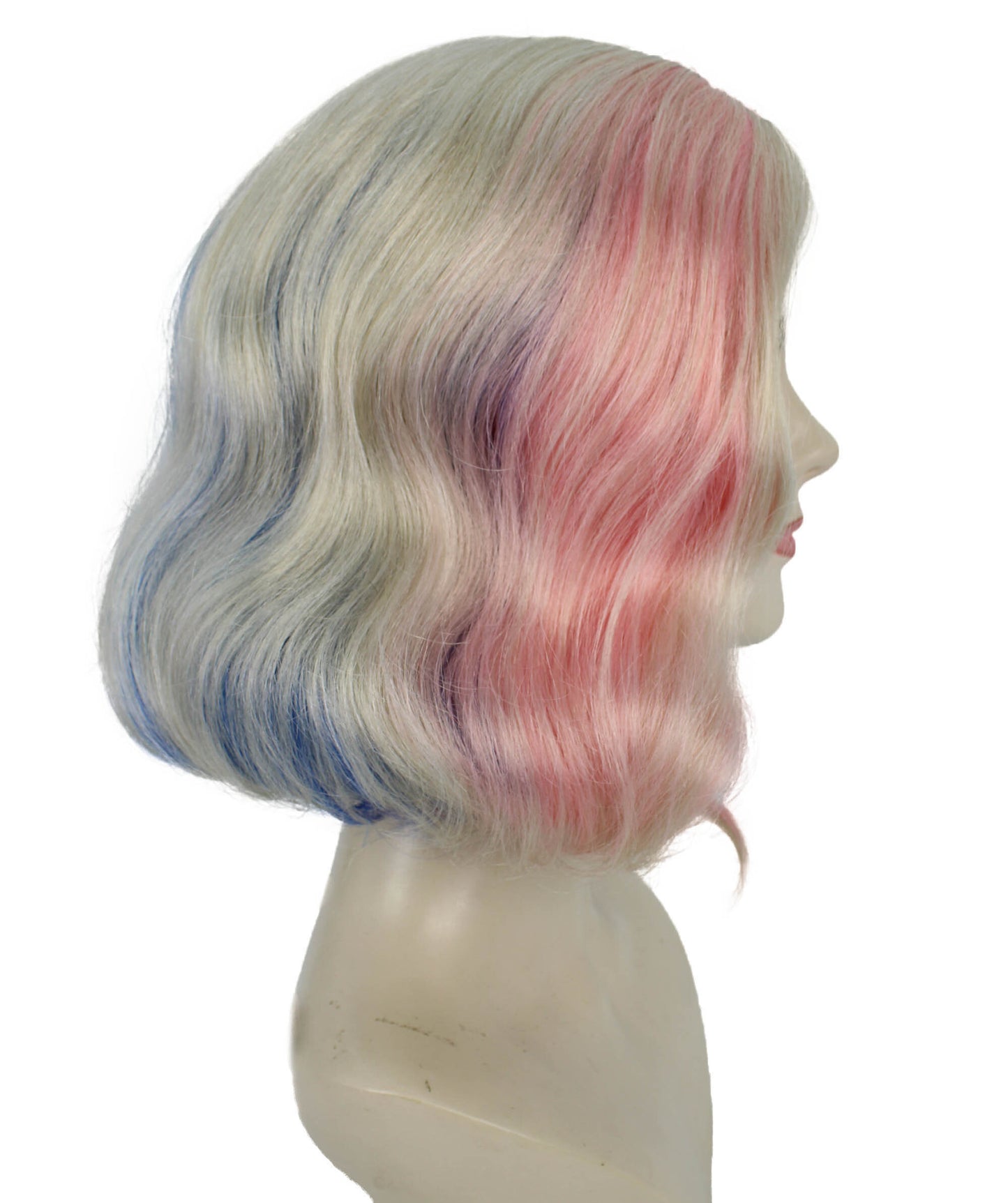 Step into a world of vibrant hues and supernatural flair with a colorful bob wig inspired by a standout female werewolf character from a hit TV series. This whimsical hairpiece encapsulates her unflagging cheerfulness and unique identity in a show otherwise laden with gothic undertones. For a comfortable fit, this wig comes with an adjustable strap to fit any head size.