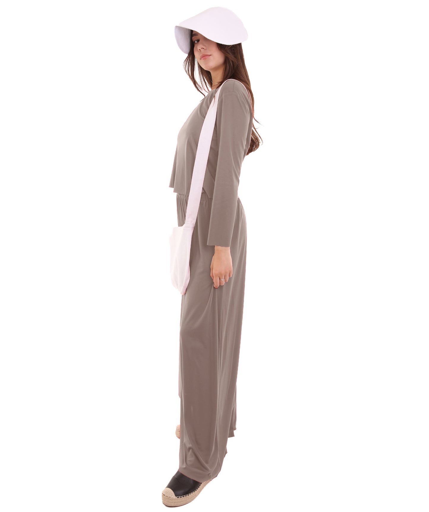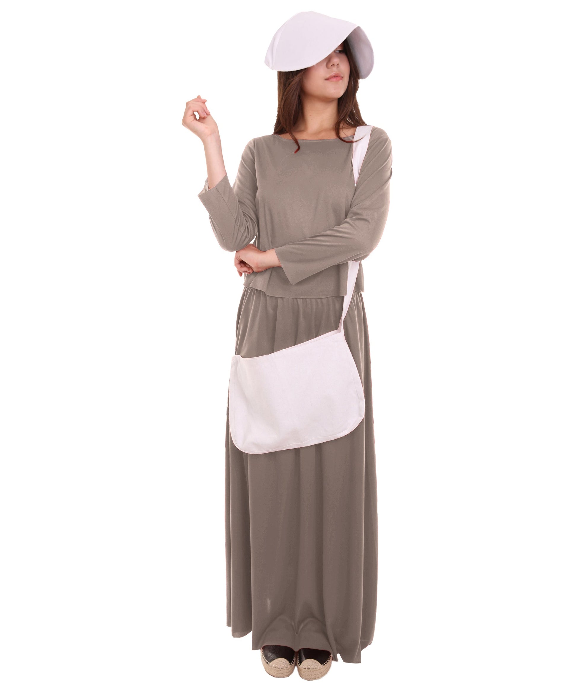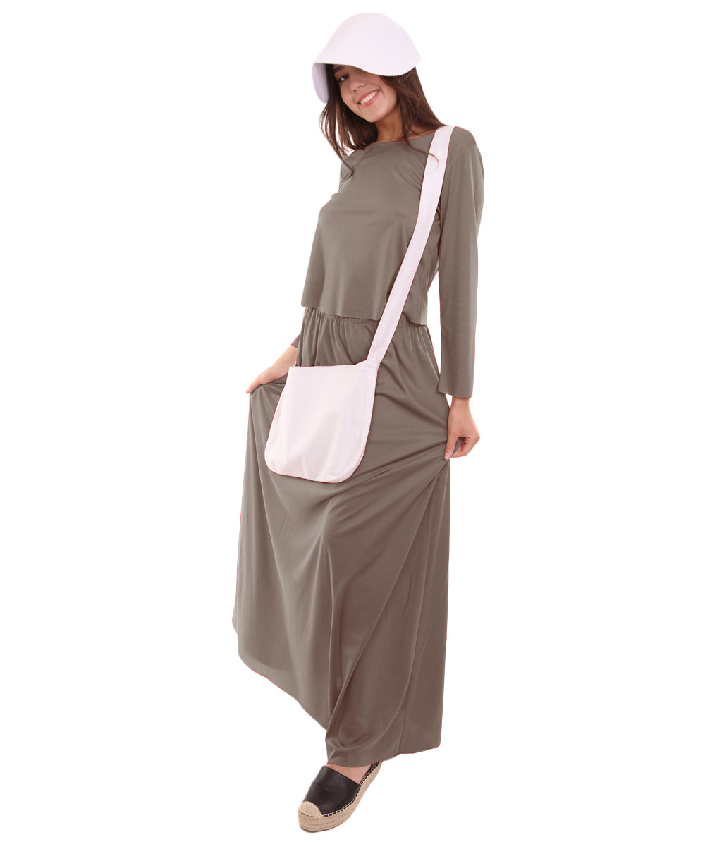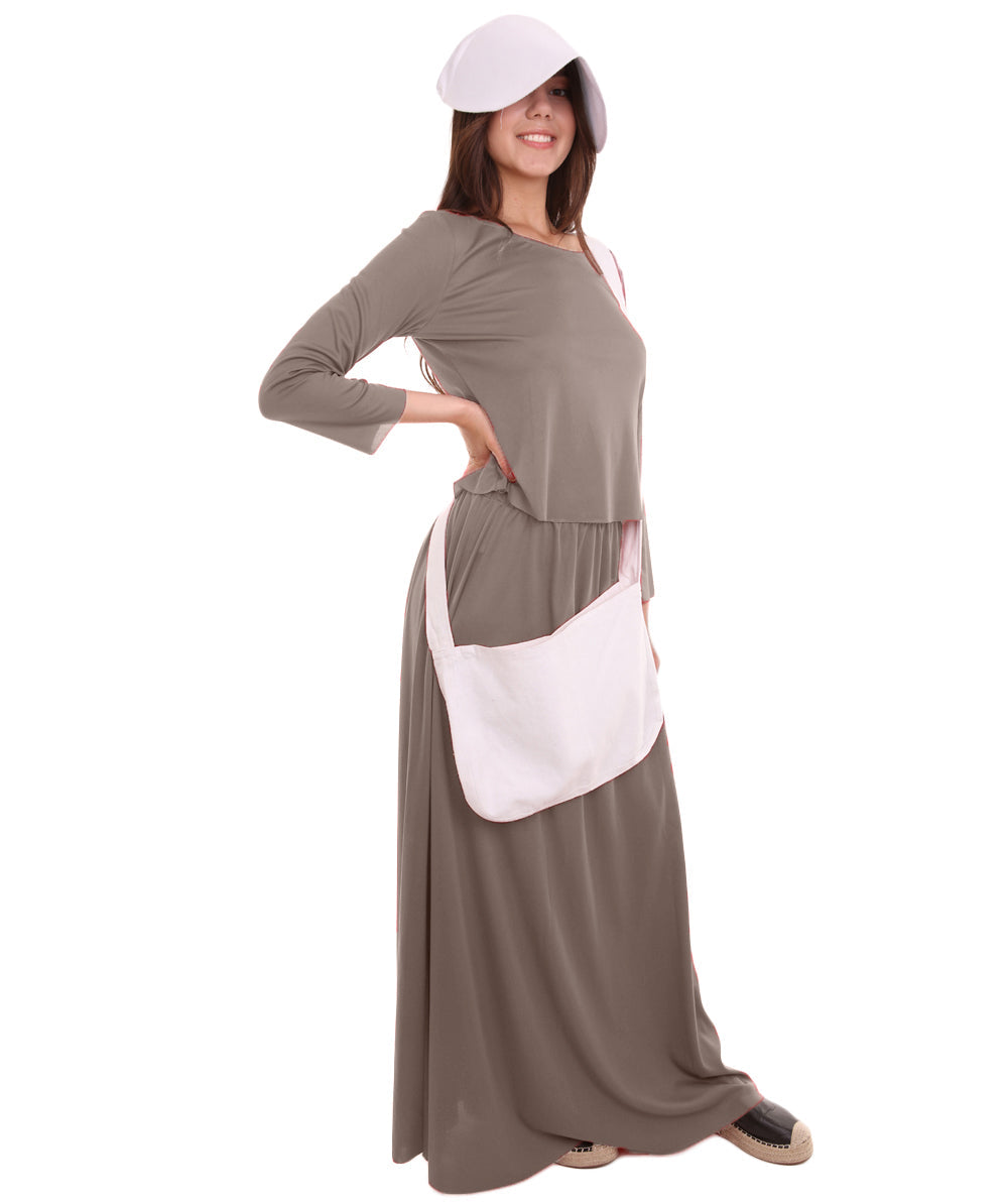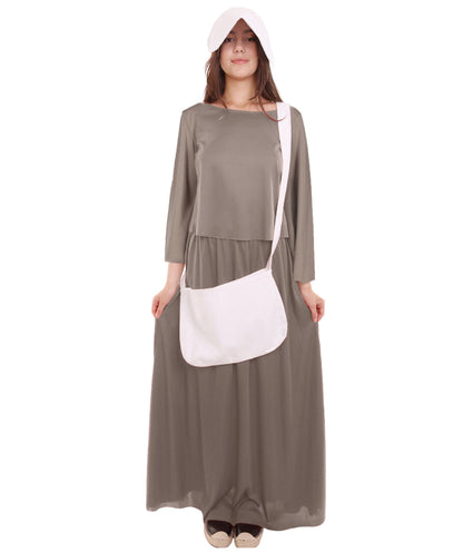 Women's Dress Handmaid Costume with Bag and Bonnet | Grey Fancy Costume